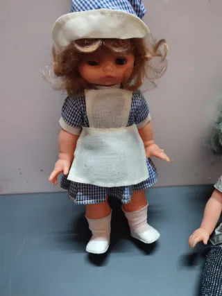 Conjunto de cuatro muñecas francesas de colección, datadas entre los años 50 y 60. Súper difícil de encontrar en este estado de conservación. - Cada muñeca presenta un diseño y vestimenta únicos. Son de plástico duro a excepción de una que tiene la cara de trapo. 2 de ellas tienen los ojitos móviles. - Ideales para coleccionistas de antigüedades. La mas alta mide 13,5 cm y la mas pequeña 10,5. El precio es x todas y es un precio estupendo.