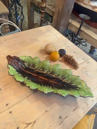 Centro de mesa, bandeja Francesa de la marca Vallauris de Cerámica vidriada. También se puede utilizar en cocina En perfecto estado.. como nuevo Mid century años 70. Antiguo Forma de hoja Tienda Anticmaníac. Hacemos envios Medidas: largo 55. Ancho 22. altura 8 Centro mesa Vintage cantaro Botijo antic antiques brocante orza macetero cantir mortero antic antiques rustico rustica retro tocinera medici copa ceramica terracota esmaltada porcelana barro tocinera jarra jarron terrissa barro vidriado hierro orza mortero anfora zafra aceitera cantara antiguo retro vidrio jarrón plato bandeja modernista art-deco