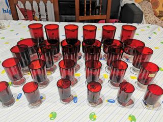 preciosa cristalería arco rock rubí francesa son seis unidades de cinco tamaños total 30 piezas siempre en vitrina vintage