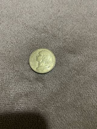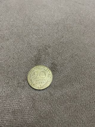 Moneda de 20 céntimos franceses del año 1983 en perfecto estado.