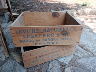 ANTIGUA CAJA FRANCESA DE LEVADURA DE MADERA.