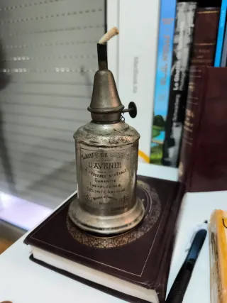 Antigua y bonita lámpara de seguridad francesa L'Avenir para essence minéral (alcohol, aceite mineral) con su vástago y mecha. Lámpara inexplicable, seguridad absoluta. Tiene marcas del paso del tiempo pero una bonita pátina. Le falta el asa trasera y una pequeña hendidura pero no le quita esencia. Se desenrosca la cápsula (ver fotos). Nunca usada. Un magnífico artículo decorativq - Inscripciones en francés, Lampe de Sûreté L'Avenir. Garantía Inexplosible Sécurité Absolue. - Marca de fábrica SST depositada. Vintage, artículo decó, colección, arte, vanguardia,
