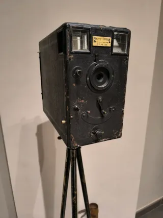 Cámara fotográfica antigua de cajón antigua, identificada por la placa en su parte superior como "PHOTO-OPERA BCapucines PARIS". Es una cámara de cajón francesa para placas, fabricada a partir de 1900. La empresa E. Mazo tenía su sede en el número 8 del Boulevard Magenta en París a principios del siglo XX. El aparato permitía tomar fotografías con el formato de 12 x 9 cm. Su construcción es de madera, revestida en cuero negro. Viene con su tripode con lo que la hace más dificil de encontrar. En buen estado teniendo en cuenta que tiene más de 100 años. Más cosas interesantes en mi perfil
