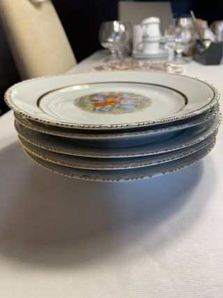 Platos Porcelana Vintage Caza Dorado Vajilla