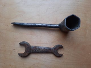 Conjunto de herramientas antiguas fabricadas en hierro. - Llave inglesa con dos bocas marca MAX SIEVERT, 10 cm de larga - Llave hexagonal de tubo con punta destornillador, 14 cm de larga. - Las vendo individuales a 3€ cada una Las puedo enviar