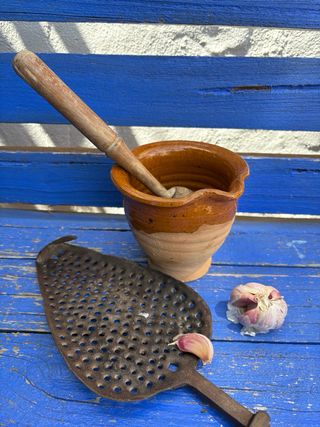 ANTIGUO ALMIREZ DE CERÁMICA DEL S.XIX VIDRIADO. Barro cocido en horno y vidriado con el encanto de nuestras abuelas. Utensilio popular para hacer majados a mano de forma tradicional. Muy bién conservado con su mazo en madera de 25 cm. Para su uso, colección o decoración. antigua antigüedades cocina colección handmade utensilio hogar abuela viejo midcentury manises cristal pop industrial botánica Láminas Redouté acero cromado lámpara caña mimbre bambú boho españa manises cristal chandelier mueble marco cuadro opalina jarrón florero viejo rayador forja