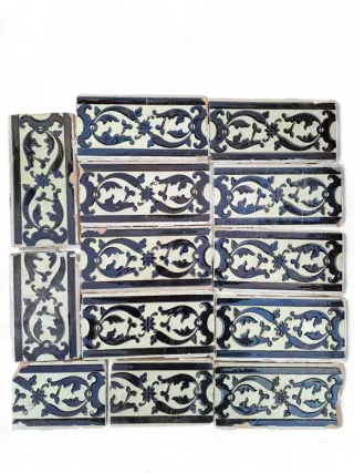 -Maravillosos azulejos antiguos de cenefa de la gran fábrica cerámica Mensaque Rodríguez y Cia (Triana). Los azulejos son de arista, pintados a mano. Las medidas son de 10x20 cm cada uno. Hay alguno mas corto como se puede apreciar en la fotografía. Azulejo, azulejos, cerámica, cerámicas, antiguo, antigua, valencia, triana, manises, granada, fajalauza, tinaja, lebrillo, mural, plato, fuente, jarra, jarrón, colección, decoración, mensaque, ramos rejano.