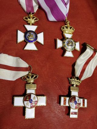 Premio a la constancia militar. Se venden por separado a 30 euros cada una las dos de arriba de premio a la constancia y las dos de abajo a 70 cada una orden Mérito Militar. Todas en buen estado ocasión por precio en espacio vintage de lunes a viernes en calle Sant Pere nés alt 53 metro Urquinaona con antigüedades curiosidades coleccionismo etc