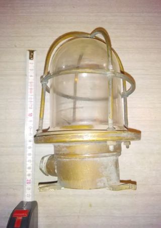 FARO DE BRONCE ORIGINAL MUY ANTIGUO.Está en muy buen estado.Este producto es ideal para decorar.Es un artículo difícil de encontrar y muy valorado para los coleccionistas.Todo original.Cristal original 25 x 9 centímetros de diámetro,en muy buen estado de conservación,para restaurar y dejar como nuevo ya que el bronce lo permite.Origen militar en lugar con humedad,aunque es similar a los faros nauticos o de barco.2 unidades disponibles. Casi regalado.Posibilidad de mas fotos. Artículo auténtico, raro y unico, no encontrarás otro en igual estado y precio. Para exponer, decorar, atrezo, usar o coleccionar. Intacto desde el primer dia.