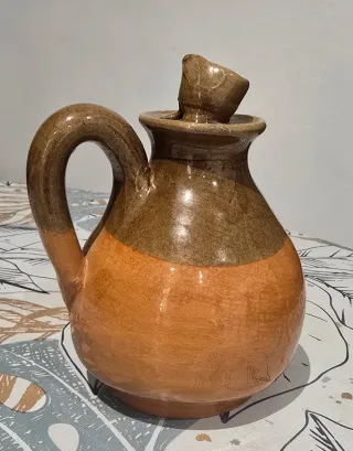 Aceitera de cerámica rústica antigua con tapa, marcada con “Oli”. Pieza de alfarería tradicional, muy decorativa y funcional. En buen estado, sin roturas. Ideal para colección, decoración rústica o uso en cocina. Se envía bien protegida. Más productos en mi perfil