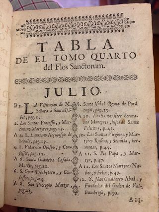 Flos Sanctorum - Tabla Tomo IV Julio