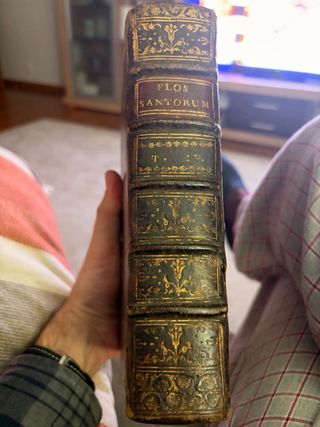 Flos Sanctorum – Tomo IV – Madrid, 1716 – Encuadernación en piel dorada Se vende ejemplar original del siglo XVIII de Flos Sanctorum. Quarta Parte, impreso en Madrid en 1716 por Agustín Fernández. Autor: R. P. Pedro de Ribadeneyra, S.J. Con textos de Juan Eusebio Nieremberg y Francisco García. Contiene las vidas de los santos de los meses de julio y agosto. Características • Tomo IV (volumen suelto) • Encuadernación original en piel con hierros dorados de gran calidad • Lomo decorado con tejuelo original • Papel original del XVIII • Interior íntegro, sin faltas de texto