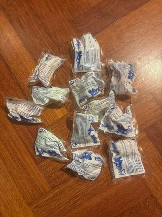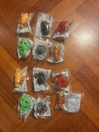 Colección de figuras de insectos de Phoskitos. - Figuras de plástico. - Varios colores: naranja, verde, rojo y marrón. - Incluye figuras negras. - Cada figura viene en su envoltorio original.