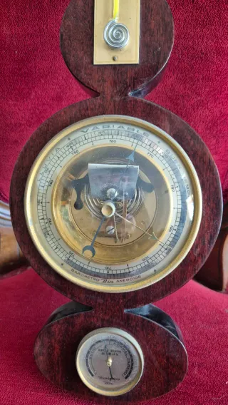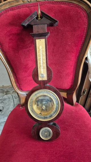 Conjunto de instrumentos meteorológicos de madera. Fijarse bien en las fotos ,funciona perfectamente pero el dorado ha perdido algo de brillo por los años - Barómetro. - Termómetro. - Higrómetro.