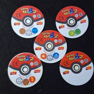 Pack de 6 tazos de Pokémon. - Puedes pedir más fotos si las necesitas :) - Son los originales de Matutano del año 2001 (mi propia colección) - Como nuevos, a excepción de algún pequeño defecto o rasguño - Hitmontop #237 - Skiploom #188 - Wobbuffet #202 - Blissey #242 - Quagsire #195 - Slowking #199