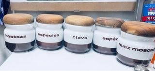 5 especieros vintage madera y cerámica