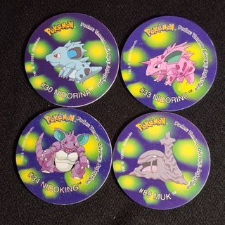 Colección de 5 tazos de Pokémon. - Tazo #30 Nidorina - Tazo #33 Nidorino - Tazo #34 Nidoking - Tazo #89 Muk