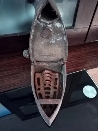 Plancha antigua de hierro, ideal para coleccionistas o decoración. - Material: Hierro. - Diseño clásico y robusto.
