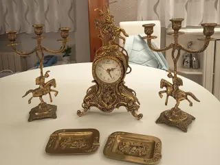 juego 2 candelabros, reloj , funciona pila AA , perfecto funcionamiento, marcos portafotos, para fotos fe hasta 31 × 27 , todo en perfecto estado, el bronce es de buena calidad, es bronce con brillo , muy bonito , no se pone feo .precio negociable.
