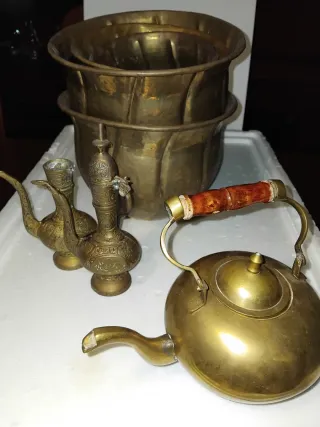 Lote Bronce: Tetera, Jarra y Maceteros
