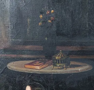 Cuadro antiguo paisaje floral