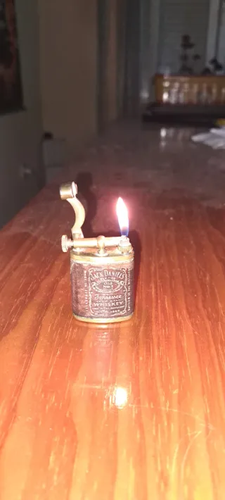 Encendedor de estilo retro con un diseño inspirado en la etiqueta de Jack Daniel's. - Acabado metálico. - Detalle de etiqueta de Jack Daniel's Tennessee Whiskey.