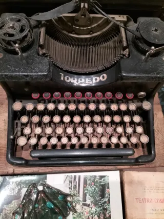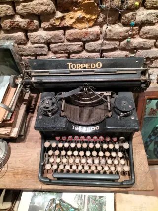 Máquina de escribir analógica de la marca Torpedo. Un clásico para coleccionistas o amantes de lo retro. - Diseño vintage. - Mecanismo de escritura. - Teclado QWERTY. - Sin envío. A recoger en Madrid 28008. Se admite visita previa.