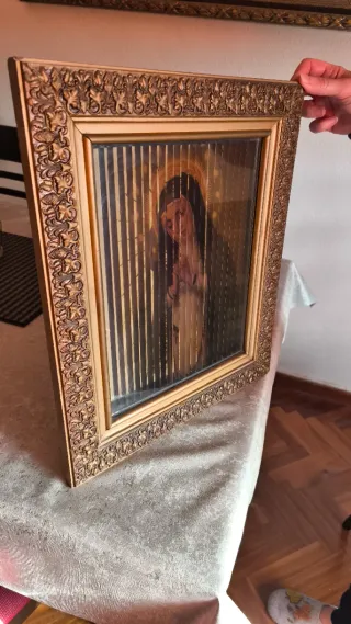Imagen lenticular de Jesús de Medinaceli con marco dorado. En un lateral está Santa Brígida y en el otro la Virgen del Carmen. Dimensiones 40 x 34 cm No hago envíos - Marco con relieve. - Efecto 3D. - Representación religiosa.