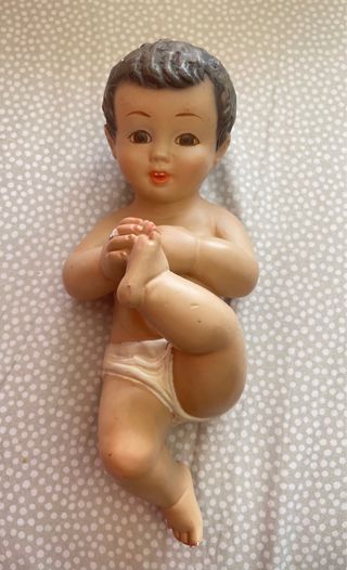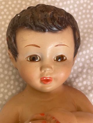 Bonito niño Jesús vintage para reparar algunas partes.por lo demás en conjunto bien conservado.Mide unos 23 cm