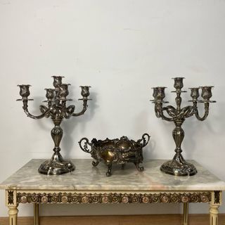 PLATA 925: CANDELABROS Y CENTRO DE MESA