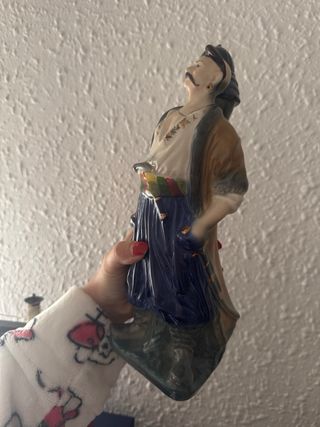 Botella de porcelana pintada a mano con la figura de Karmeliuk. Una pieza decorativa y original. Representa la imagen legendaria del famoso héroe ucraniano Ustym Karmeliuk - Diseño detallado de la figura. - Acabado en porcelana de alta calidad.