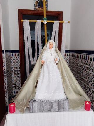 Figura de virgen para vestir, ideal para altares o devociones. -50cm Precio negociable mínimo 150 - Vestimenta verde. - Detalle de encaje y perlas en la cintura -inclulle 2 trajes y 3 manto -virgen hecha con 3 d -se vende más ropa aparte