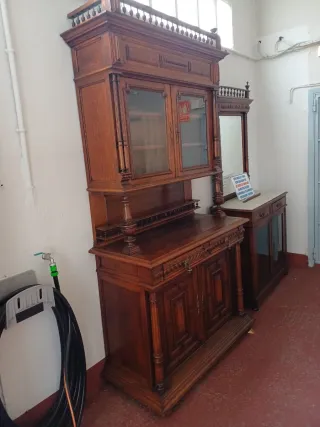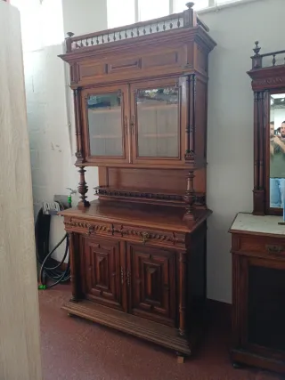 Mueble de madera maciza ROBLE con vitrina y cajones. - Diseño clásico y elegante. - Puertas acristaladas en la parte superior. - Dos cajones y dos puertas inferiores con gran capacidad de almacenaje.