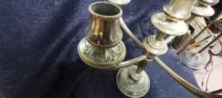 Conjunto de candelabros de estilo religioso, ideales para coleccionistas o decoración. El par 120 y algunos 120 cada uno - Fabricados en metal. - Diseños variados y ornamentados. - Piezas únicas para un ambiente especial.