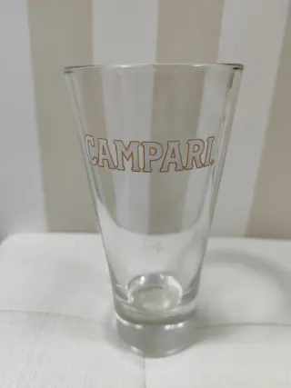 Vaso de cristal transparente con el logo de Campari. - Diseño clásico. - Ideal para coleccionistas.