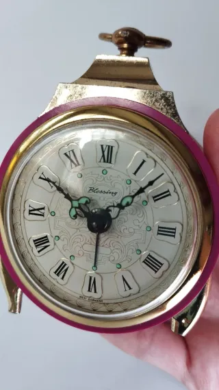 Reloj despertador Blessing. Años 70-80. Fabricado en Alemania Occidental. Despertador antiguo con mecanismo de cuerda. Funciona bien y suena la alarma. Tiene las patas rotas aunque se sostiene igual. Los números y las agujas brillan en la oscuridad. Diámetro esfera: 5'5cm Más modelos de despertadores de cuerda y otros artículos de colección en mi perfil. Hago lotes personalizados. # antigüedad antigüedades relojes coleccionismo relojería joyería joyas vintage retro decoración hogar interiorismo alba zafiro Titán Rubí Dille Diehl diletta blessing corona micro transistor cyma Seiko Orient Citizen rhythm vedette festina West germany