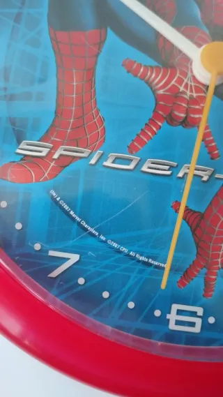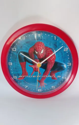 Reloj de pared con diseño de Spiderman 3. Del año 2007. En buen estado, funciona perfectamente. Con gancho para colgar. - Diámetro: 20 cm - Material: Plástico Más modelos de relojes, despertadores de cuerda y otros artículos de colección en mi perfil. Hago lotes personalizados. # antigüedad antigüedades relojes despertador antiguo colección coleccionismo relojería joyería joyas retro hogar interiorismo despertador de sobremesa reloj de sobremesa Japan reloj de cocina Mauthe electric kaiser Diehl diletta blessing corona micro vedette festina jeco Seiko Orient Citizen rhythm alba zafiro Titán Rubí Dille reguladora Marvel