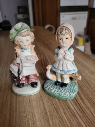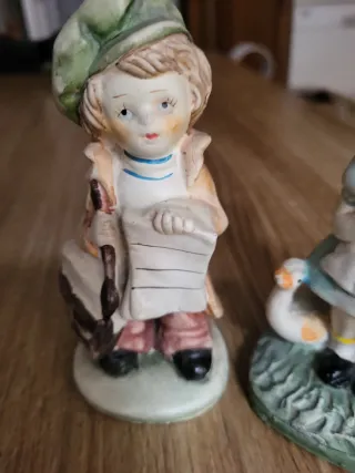 Conjunto de 4 figuras decorativas que representan seres de la mitología asturiana. - Figuras de cerámica pintadas a mano - Cada figura tiene una base con su nombre grabado. - Incluye el Papón, la Guestia,la Guaxa y Home del sacu. Excelente estado de conservación.