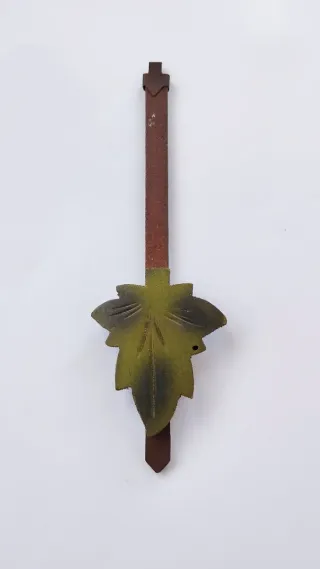 Péndulo de madera para reloj antiguo de pared, con un diseño de hoja, en color verde y marrón. Mide 18cm. Tiene 3 agujeros de carcoma, la madera ha sido tratada con un producto para eliminarlo. # antigüedad antigüedades relojes despertador antiguo colección coleccionismo relojería joyería joyas vintage retro hogar interiorismo despertador de sobremesa reloj de sobremesa Japan reloj de cocina kaiser Diehl diletta blessing corona micro transistor vedette transistor alba zafiro Titán Rubí Dille reguladora Seiko Orient Citizen rhythm Peter gong electric