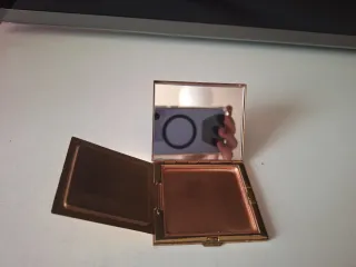 Caja vintage para polvos de maquillaje Revlon con espejo, años 50/60. Metal dorado y tapa esmaltada negra. Interior perfecto y exterior con lógicos signos de uso (ver fotos). Medidas: 7 x 6 cm. Antigüedades, coleccionismo.