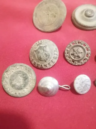 Conjunto de botones antiguos con diseños variados. - Ideal para manualidades y proyectos de costura. - Materiales diversos como metal y plástico. - Estilos clásicos y vintage.