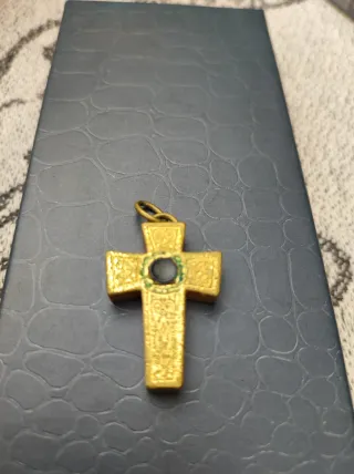 Cruz de Caravaca magnética - Color dorado. - Adorno de piedra oscura. - Diseño grabado en los brazos de la cruz.