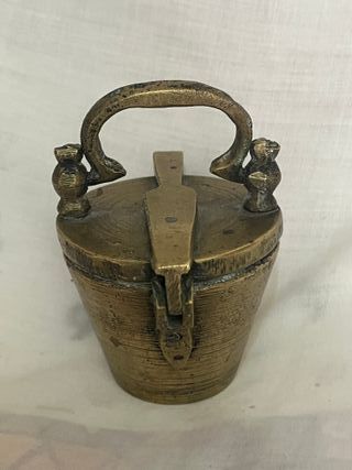 Antiguo ponderal de bronce con ocho vasos anidados, datado en el siglo XIX. Una pieza de colección con un diseño intrincado. - Fabricado en bronce. - Incluye ocho vasos anidados.