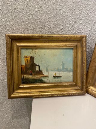 Conjunto de dos marcos con pinturas de paisajes. 2 unidades