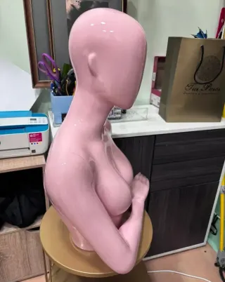 Torso de maniquí en color rosa, ideal para exhibición. - Diseño de busto femenino. - Acabado brillante.