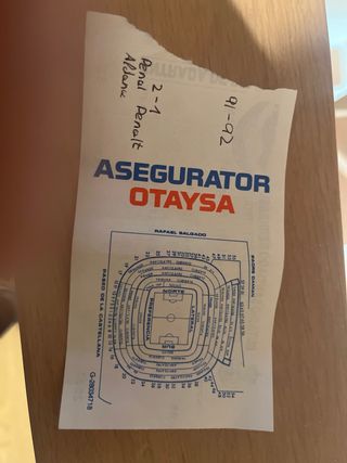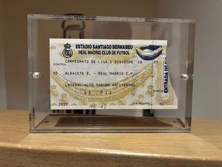 Entrada para coleccionista de aquel partido de Liga entre el Real Madrid C.F. y el R. Valladolid en el Estadio Santiago Bernabéu. Fue el 8 sep del 91, en este 2026 se cumplen 35 años. Fue el día del incidente entre Míchel y Valderrama: vamos, cuando le tocó los huev... - Lateral Alto Tercer Anfiteatro. - Puerta 50. - Control 01. - Asiento 6407. La vendo con o sin el metacrilato que sirve como decoración: como quiera el comprador. con el marco +10 euros. Se abre fácilmente, tiene cierre magnetico. Y supongo que en estos tiempos en los que todos tenemos de todo, es un regalo que desbloquéa recuerdos: esto no se encuentra en Amazon.
