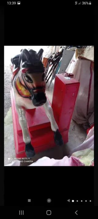 Caballito de feria para niños, ideal para decoración o juego. - Diseño de caballo blanco con silla y riendas. - Base roja escalonada.