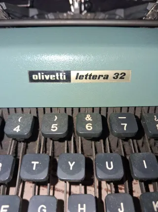 Máquina de escribir portátil Olivetti Lettera 22 en color verde menta. Un clásico del diseño. - Diseño portátil. - Teclado QWERTY. - Incluye su maletín original.