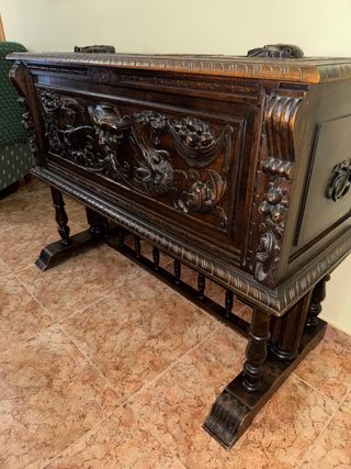 Se vende arcón antiguo de madera maciza, con impresionantes tallados artesanales y diseño clásico. Perfecto para decorar o usar como pieza funcional. En muy buen estado, ideal para coleccionistas o amantes del mobiliario vintage. Medidas y detalles adicionales por privado. ¡No te pierdas esta joya única!