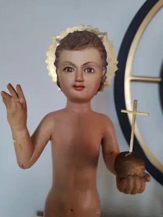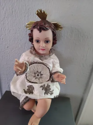 Figura de Niño Jesús con un vestido detallado. Ojos de cristal . Sin ningún desperfecto . - Altura de 40 cm.con potencias 43cm - Vestido con adornos plateados.El vestido por atrás no le llega. Tumbado no se aprecia . - Corona dorada. ENVIO . NO REBAJO !! .Figuras religiosas, sagrado corazón de Jesús, divina infantita virgen de los desamparados , talla madera niño de la bola, niño Jesús , santos, figuras religiosas, Olot, arte sacro ,Antigüedades,capilla,saya de la virgen, oleo CUZQUEÑO ,virgen de la leche,capilla , hornacia,niño dios,CAP I pota Envío